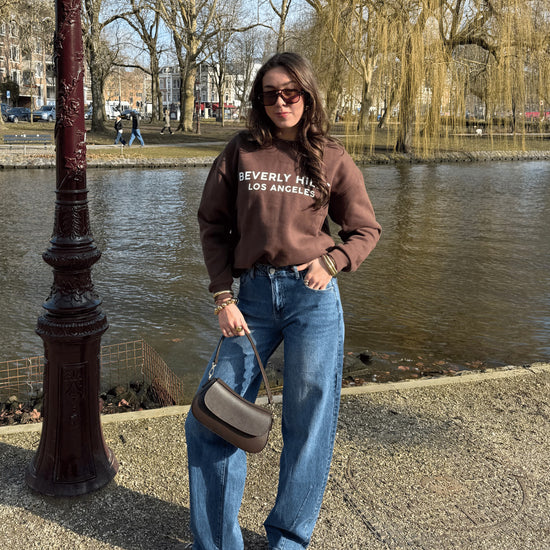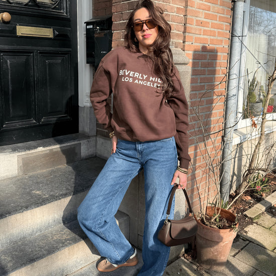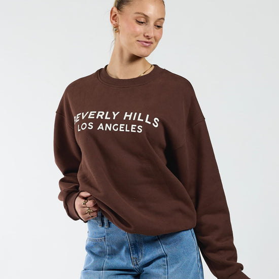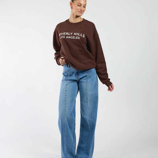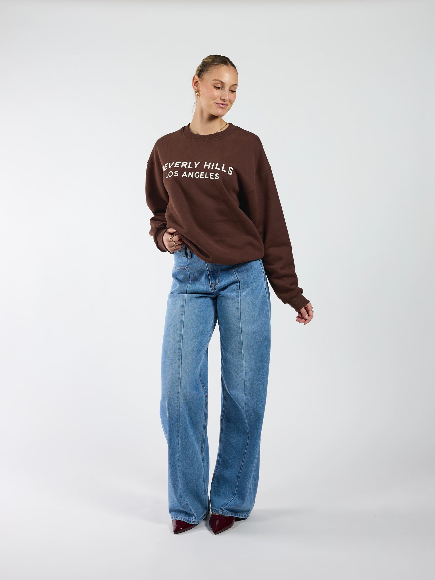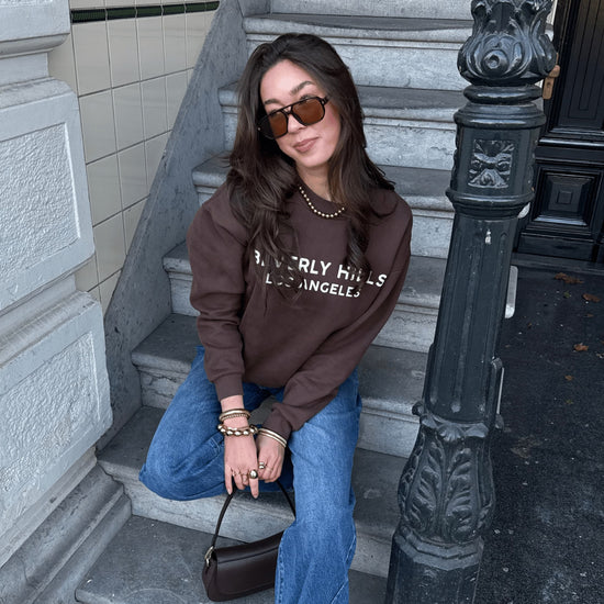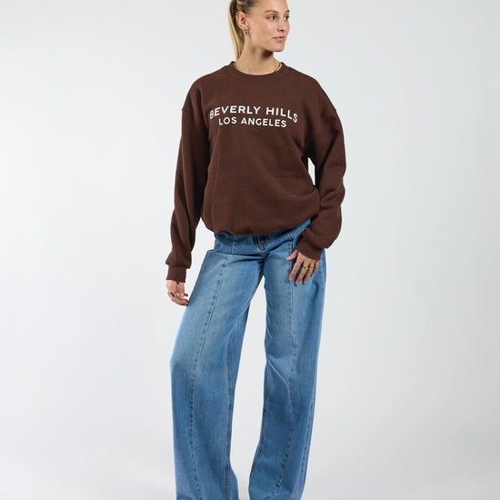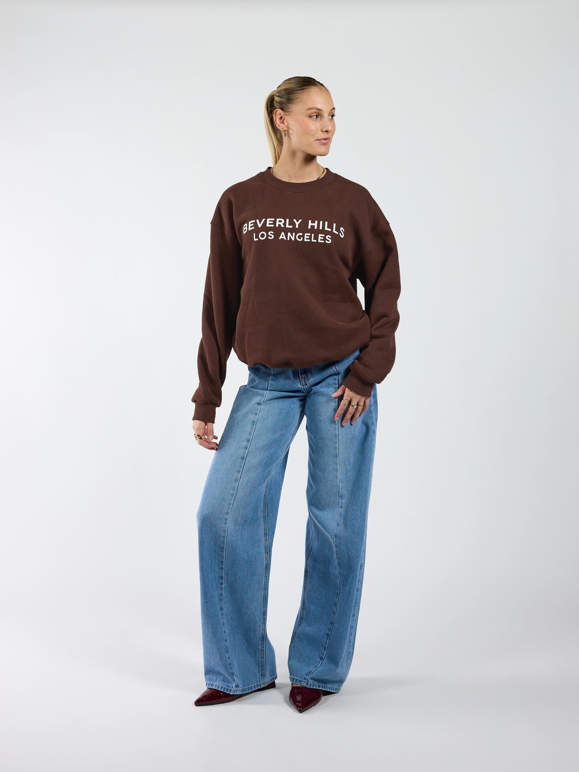 The Beverly Hills sweater is a true tall favorite. It has extra-long sleeves and a relaxed fit, perfect for tall girls. Made of a soft, comfy fabric in a warm dark brown that's totally on trend this season! Wear it with the matching Khloe jogger pants for the ultimate cozy ensemble, or style it casually with jeans. Comfortable, trendy, and made for tall girls!