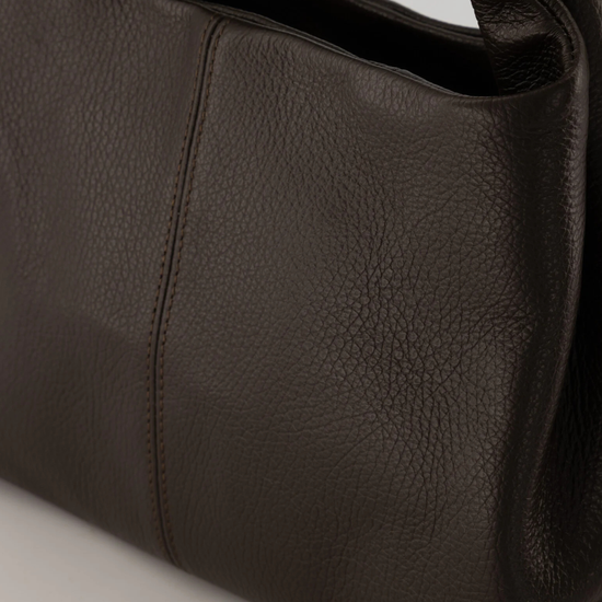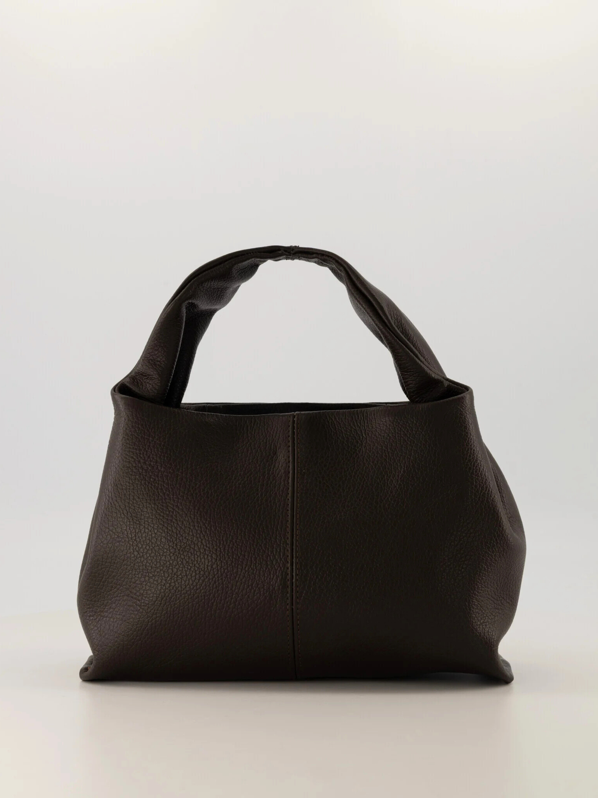 The Polly handbag is the perfect blend of elegance and functionality. This dark brown bag features a modern design with gold-colored details and can be carried as a handbag or crossbody bag. It closes with a sturdy zipper and has a handy zippered compartment inside to keep your essentials safe.